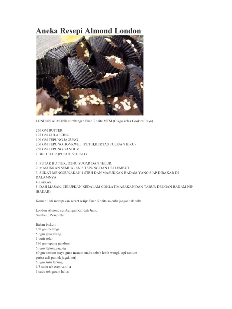 How to make almond london cookies mp3 almond london sedap 4 bahan sukatan cawan rangup mempersona special in to rose channel mp3 duration 3:52 size 8.85. Resepi gulai munggai dengan udang. Masa ni baru kedut akan terbentuk. Resep ayam betutu bali goreng. Resepi almond london rangup sukatan cawan ke, resepi almond london rangup sukatan cawan kepada, resepi almond london rangup sukatan cawan da.